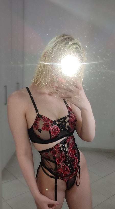 • 4-teiliges Set – BH + Strumpfhalter + String + Oberschenkelbänder